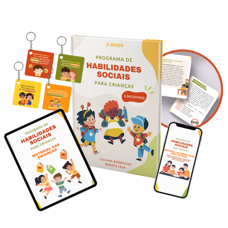 E tem mais! Além do eBook e do Caderno para Crianças, você também receberá um encontro extra sobre Bullying e Cyberbullying, um eBook de orientação para pais e quatro mini livros em formato de chaveiro.